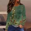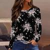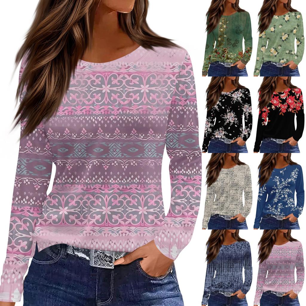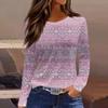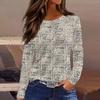Dames casual T-shirt met split aan de zoom, ronde hals, lange mouwen en losse print.