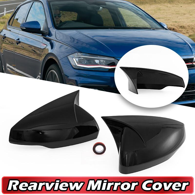 2019~23 For Volkswagen VW Polo OX Horn Rearview Mirror Covers Cap Gloss Black