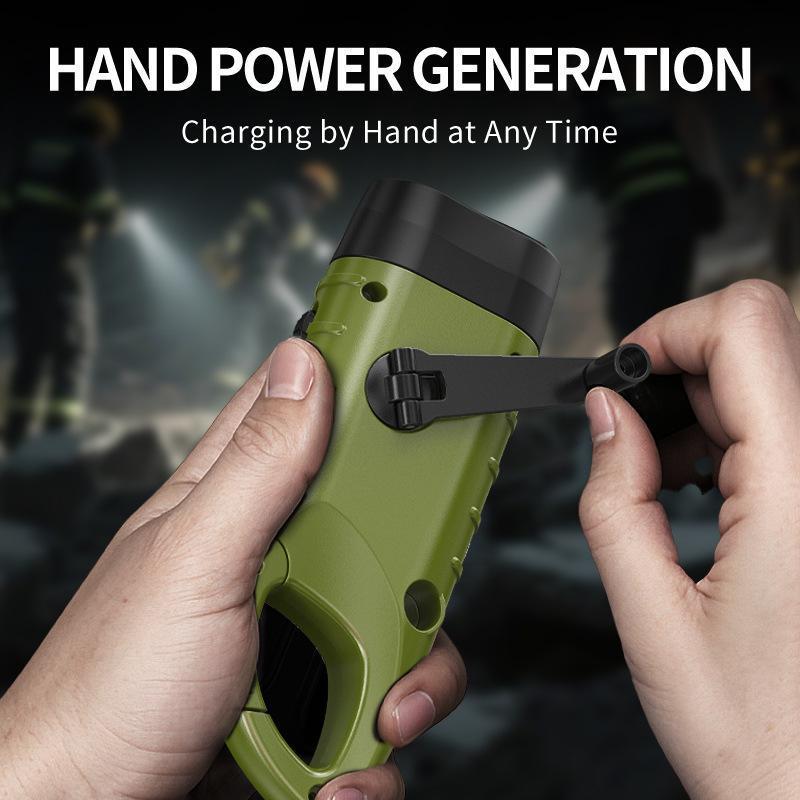 Portable LED Flashlight Tent Light Hand Crank Dynamo Solar Power Torch for Outdoor Camping Hiking Long-range Emergency Lantern