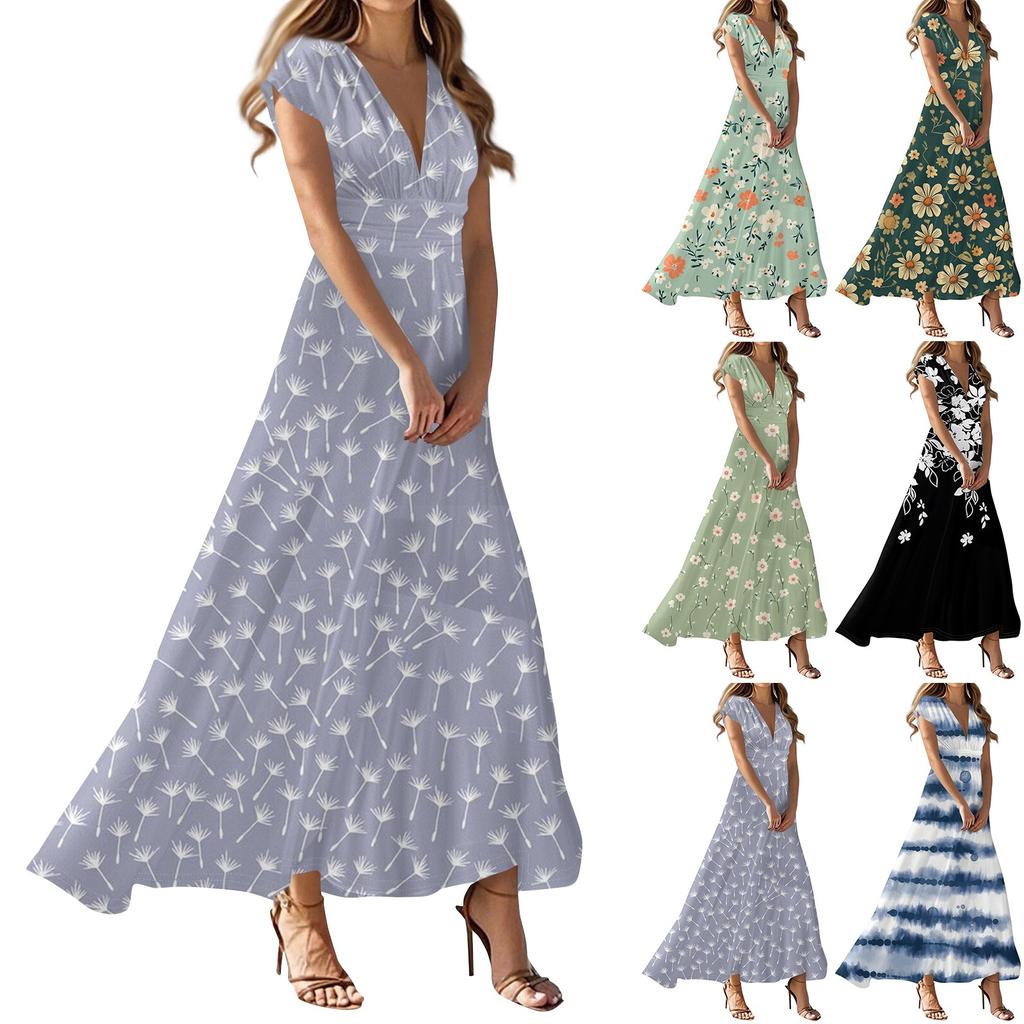 Maxi Dress For Womens High Waiste Deep V Neck Dress Printed Dresses Beach Flowy Dress Retro Summer Dresses Maxi Dress for Womens High Waiste Deep V Neck Dress Printed Dresses Beach Flowy Dress Retro Summer Dresses We can guarantee that the overall displayed in the photography is accurate, however there may be differences in how the appears during wear. This depends other physical variables, e.g. personal body size, body shape, limb proportion, height, etc. Description: MATERIAL: Our short-sleeve summer dresses feature a skin-friendly, soft, and elastic fabric that is breathable, does not shrink, and offers exceptional comfort, providing you with a delightful wearing experience. MATCHING: Pair with and a denim jacket for a relaxed day, or to a and heels for work. Add jewelry and heels for nights out, or sandals and a crossbody bag for weekends. OCCASION: This dress is versatile for various occasions like everyday wear, casual outings, work, evening events, weekend gatherings, beach trips, vacations, and travel adventures. Gender:Women Material:Polyester Dress Length:Knee-Length Decoration:None Silhouette:A-Line What you get:1 X Dress Note: Due to possible physical differences between different monitors, the product photography is illustrative and may not precisely reflect the actual color of the item received