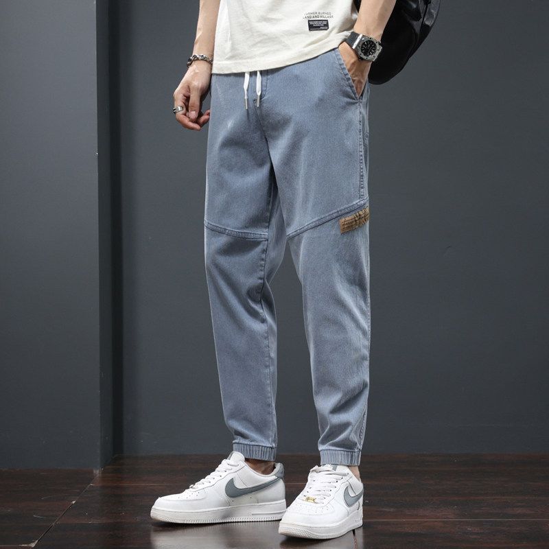 2023 Men's Casual Cropped Jeans with Cut-Off Labels, Spring/Summer/Autumn Jogger Harem Workwear Drawstring Long Pants