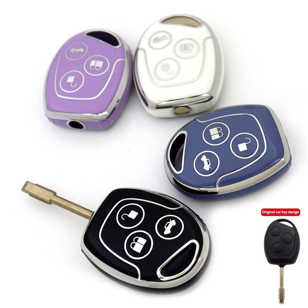 TPU autosleutelhouder voor Ford MONDEO FIESTA FOCUS C-MAX S-MAX TRANSIT KA GALAXY met 3 knoppen.