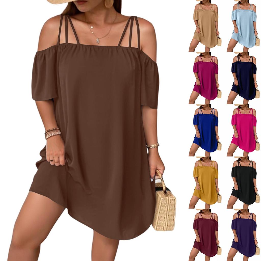 Ladies' Summer Loose And Comfortable Large Color One Shoulder Strap Dress