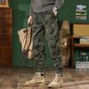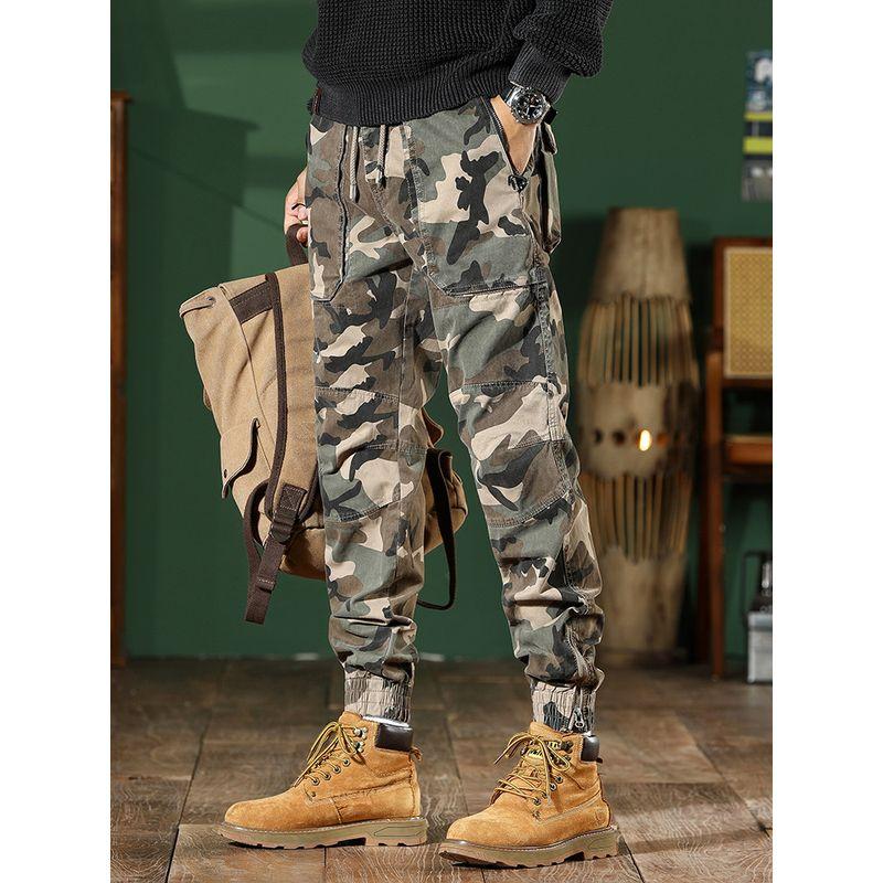 Men's Slim-Fit Camouflage Cargo Pants with Drawstring, Harem Style, Spring and Autumn Trendy Outdoor American Casual Long Pants