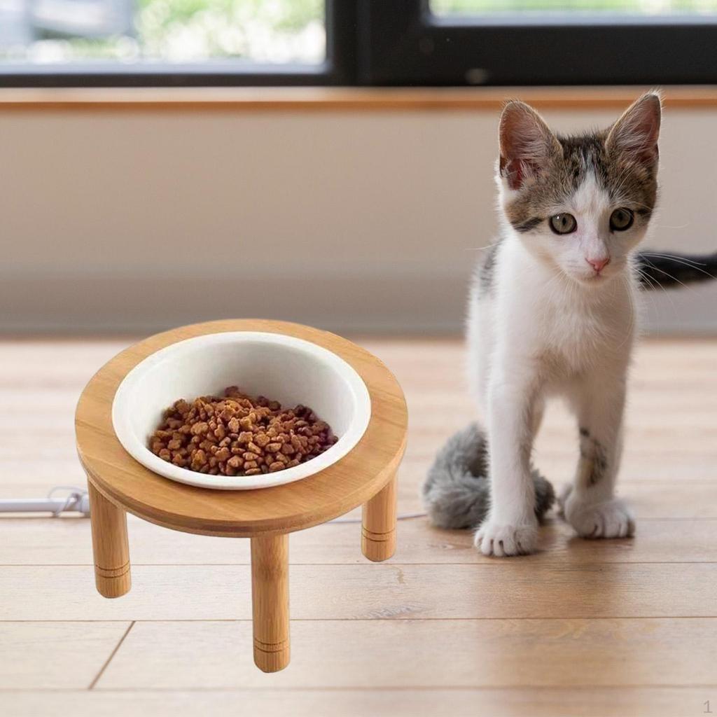 - 【Premium Materials】The pet bowl is crafted from bamboo and ceramic, ensuring durability, safety, and a stylish look that complements any home décor