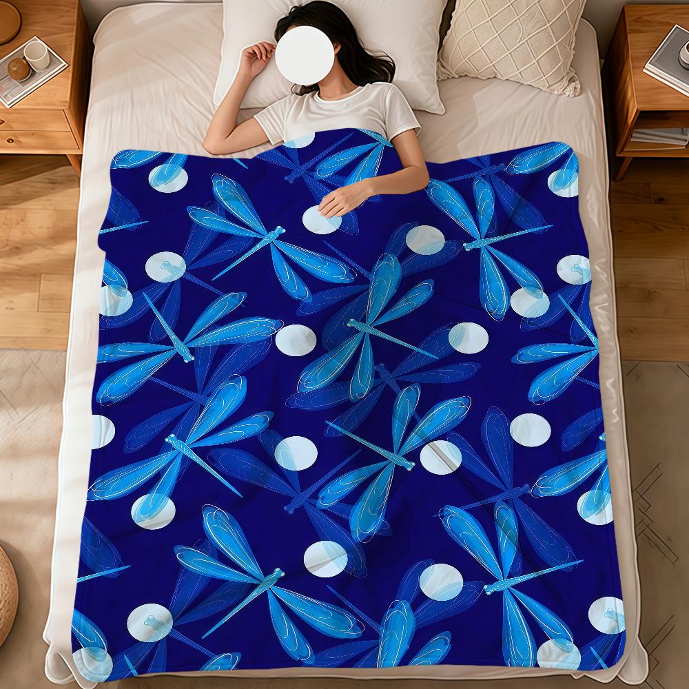 Fashion Print Dragonfly Pattern Blue Flannel Soft Warm Plush Blanket Sofa Living Room Pet Hogar Bedroom Gift Home Car Portable