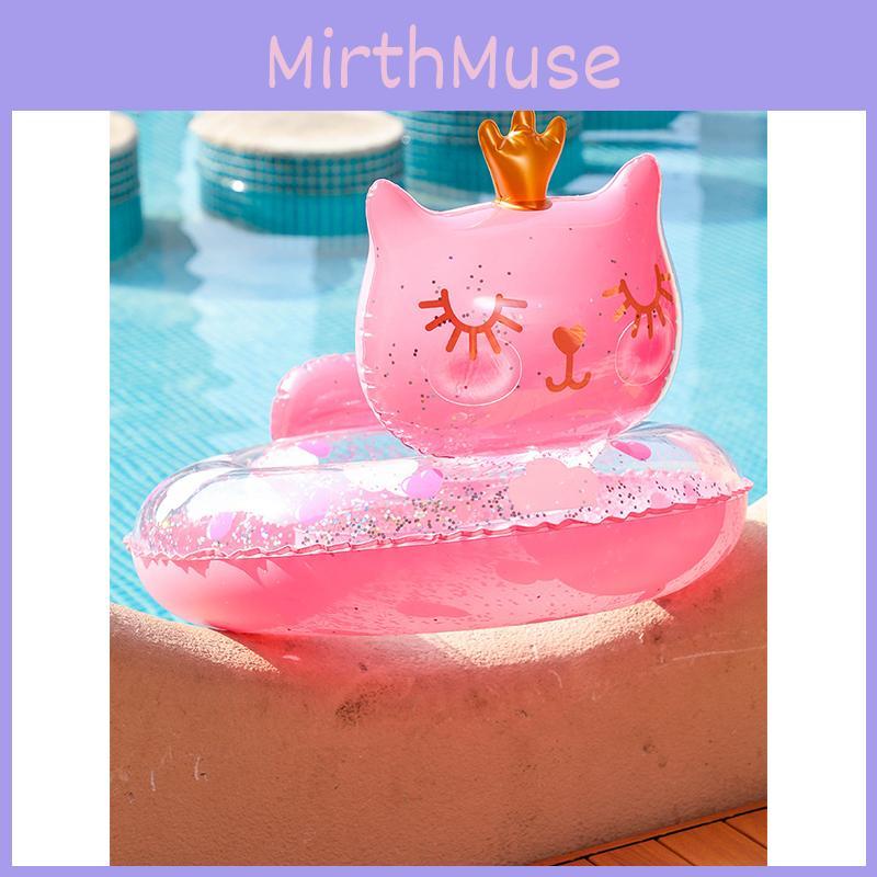 Cartoon Cat Shape Thickened Kids Inflatable Swim Ring For Toddlers With Sponge Bottom Pvc Material Ages 2-4