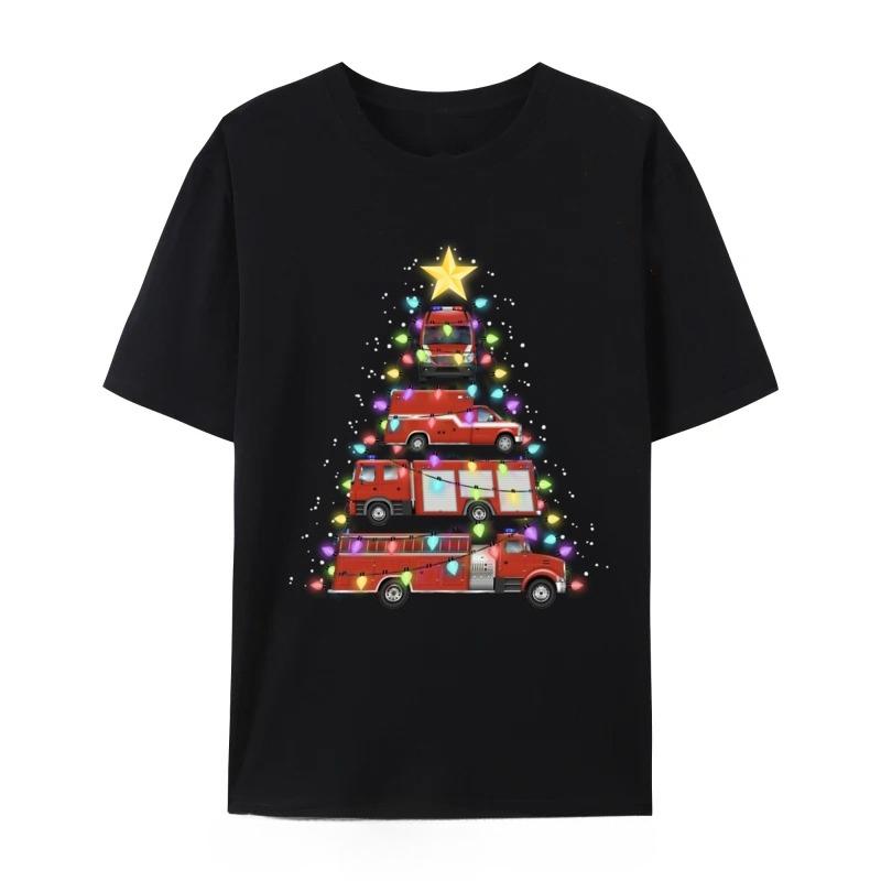 Firefighter Fire Truck Christmas Tree Santa Xmas Light TShirt Cotton Fashion Tshirt Oversized Tees Funny Graphic T Shirt