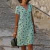 Plus Size Zomer Losse V-hals Digitale Print Damesjurk Korte Mouw Casual Elegante Jurken