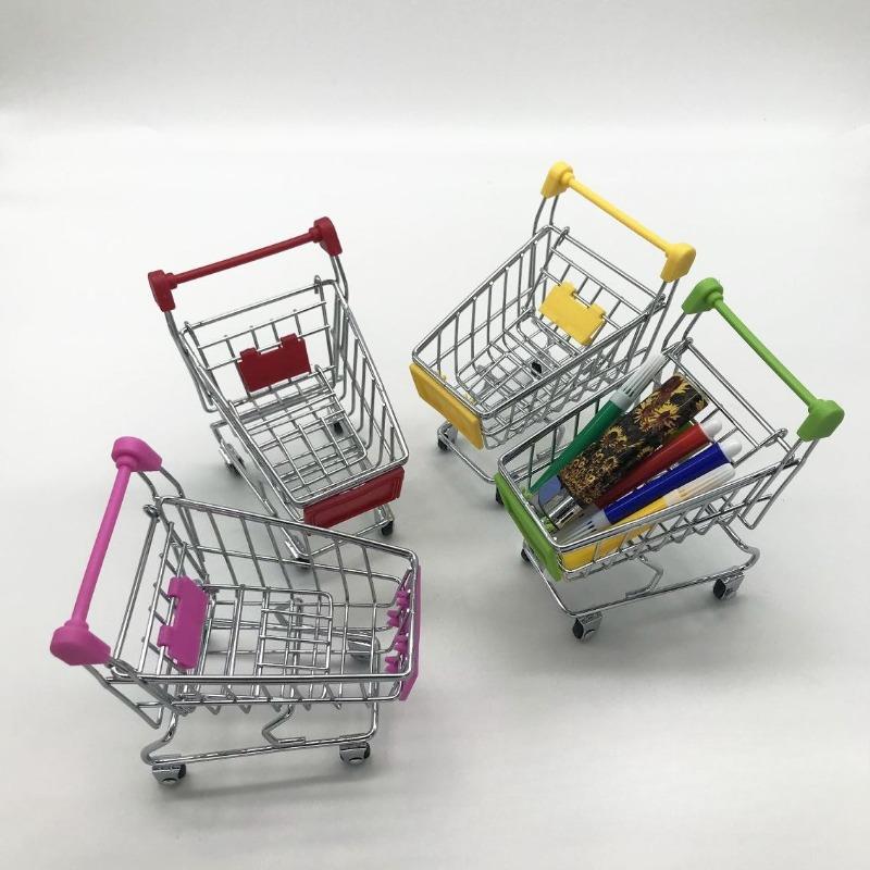1:48 Mini Supermarket Shopping Trolley Cart Desktop Model Children's Toys Home Decoration Miniature