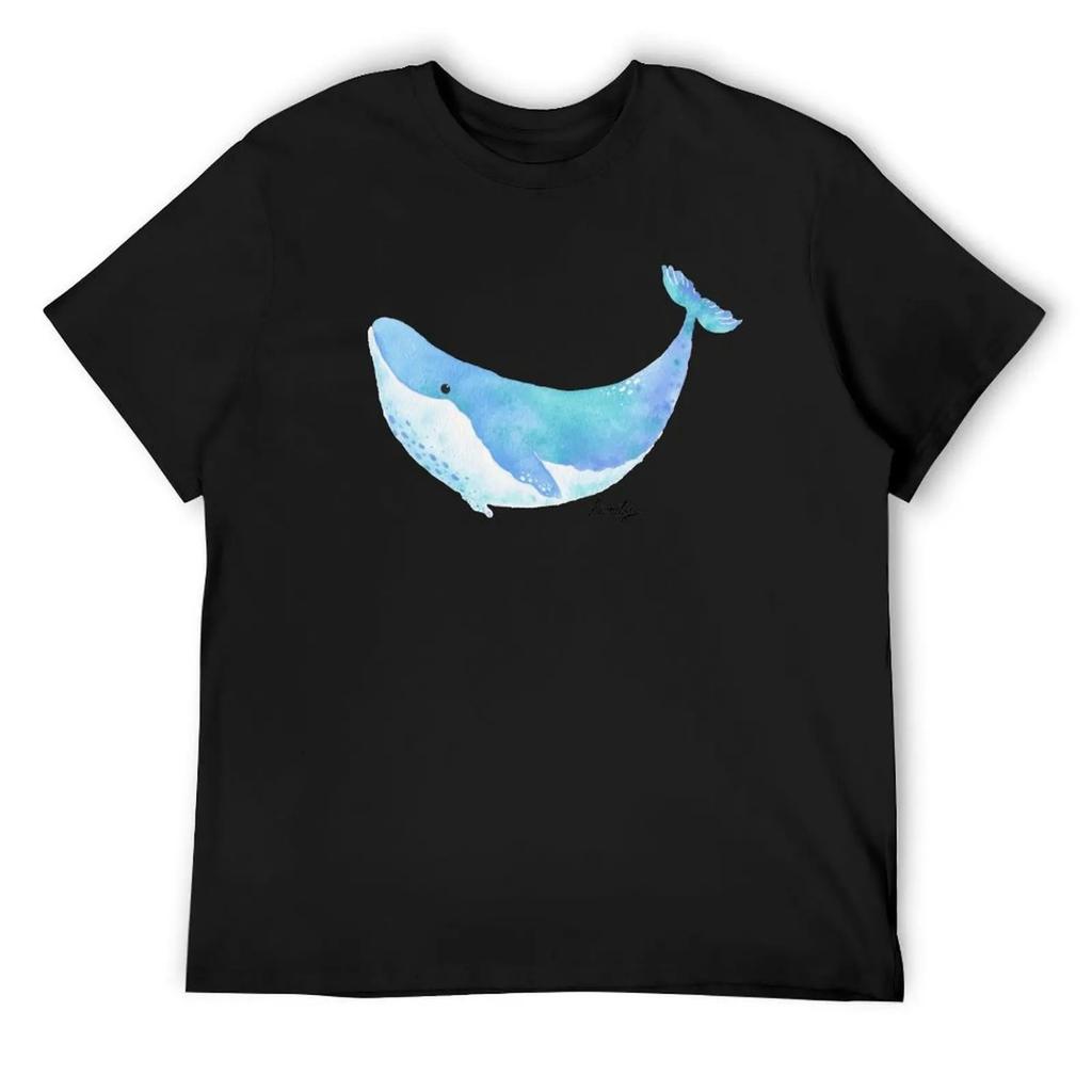 Bubble the happy blue whale, water color T-Shirt graphics man t shirt plus size clothes plain black t shirts men