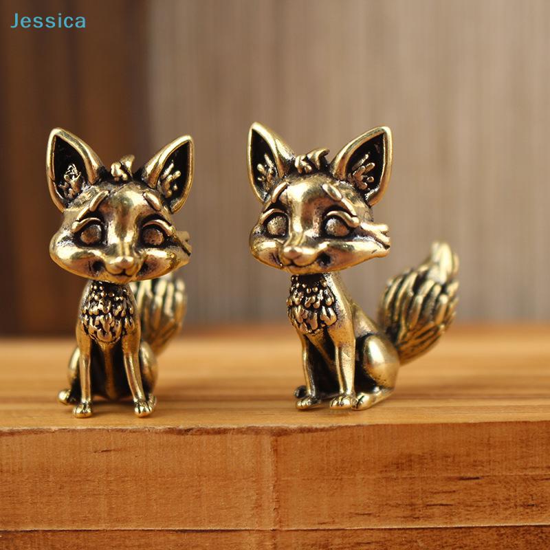 Vintage Messing Vossenbeeldjes | Schattige Dierbeeldjes voor Huis Bureau Decoratie