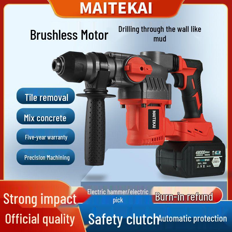 High-Power Brushless Electric Hammer: Wireless, Multi-Functional, Rechargeable Impact Drill for Concrete