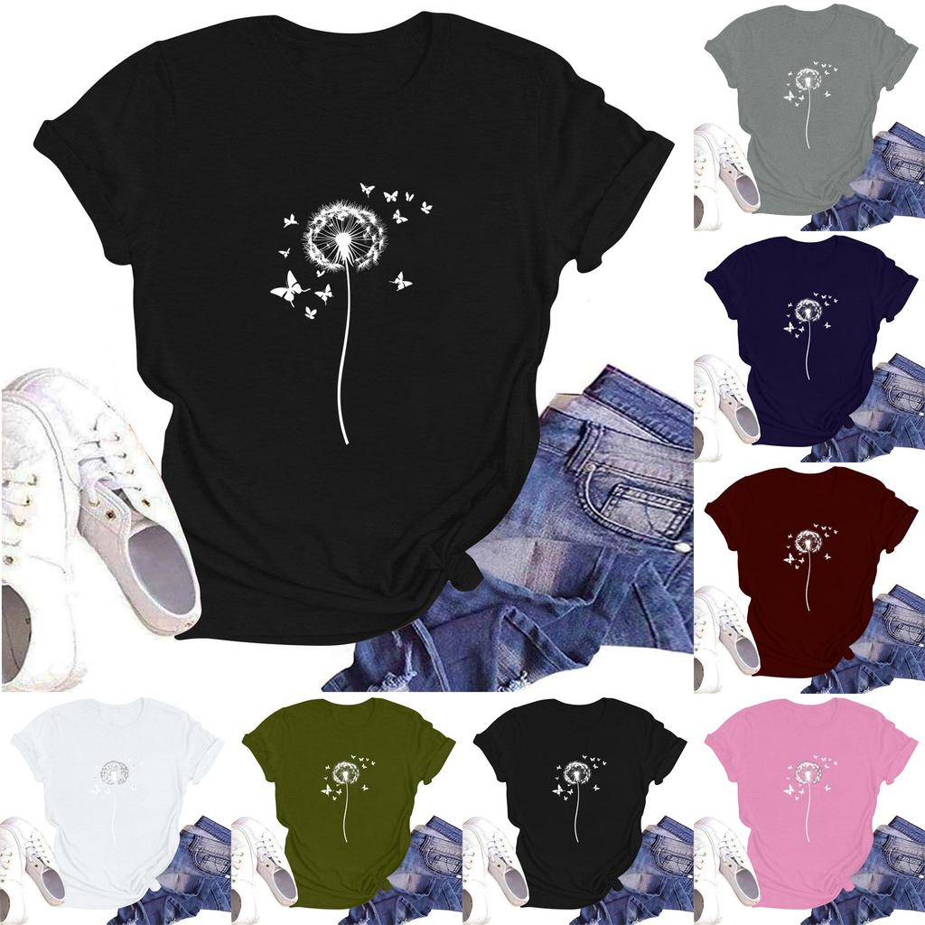 Ladies' Round Neck Casual Floral Print Short Sleeve T-shirt Top