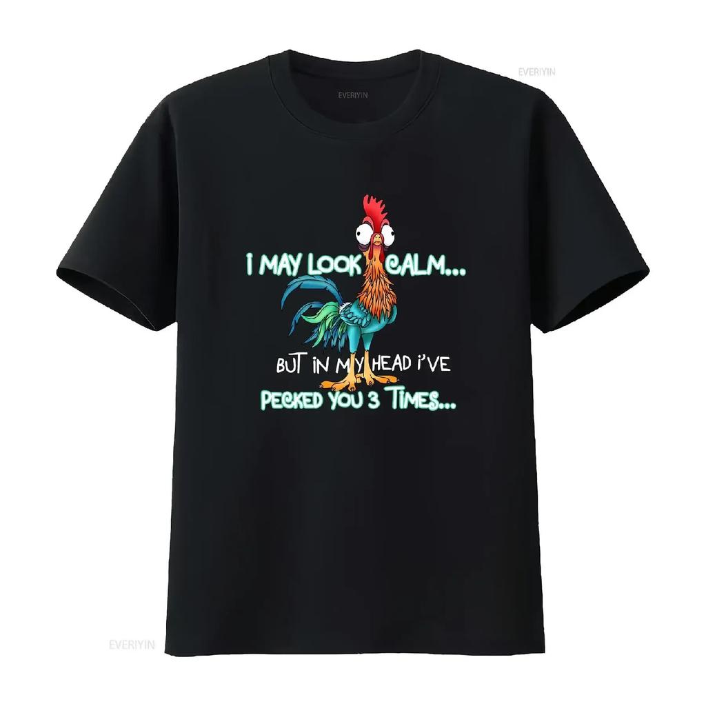 Ik mag kalm lijken, maar in mijn hoofd heb ik je 3 keer gepikt T-shirt Grappige Kip vintage Gewassen Zacht Comfortabel Uitgerekt