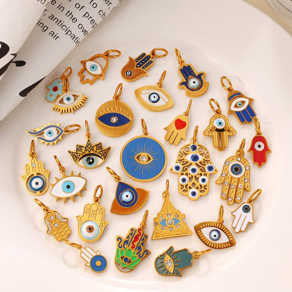 European and American retro exotic jewelry pendant golden Fatima hand evil eye element decorative pendant