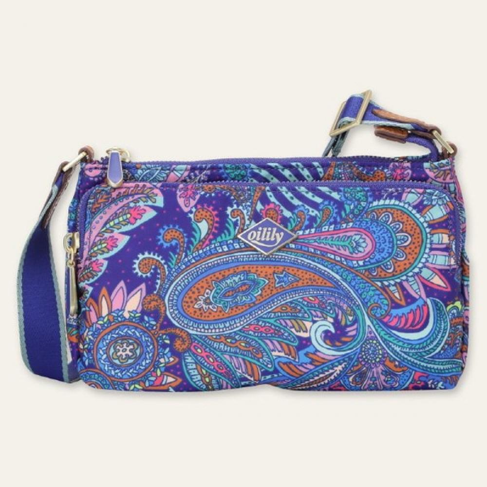 The Oilily Jenna Shoulder Bag (OWGFYBG007) is an Oilily 24 F/W season product featuring a blue color and paisley pattern as the focal point. With dimensions of 21cm in width, 14cm in height, and 5cm in depth, it is lightweight and compact but has ample internal storage space suitable for carrying essential items such as mobile phones and cosmetics. It is convenient for daily use, and a variation in Desert Rose color is also available.