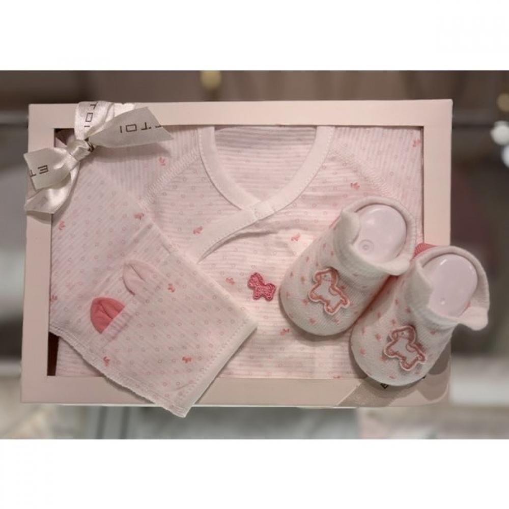 The Etwa Dot Baby Hanbok and Socks Set (07T317002S5) is composed of a dot-patterned baby hanbok and socks for newborns. Suitable as a gift for pregnancies and childbirth in the Year of the Horse, this set emphasizes comfort with its double-layer structure and features a wearing style that protects the baby's umbilical cord.