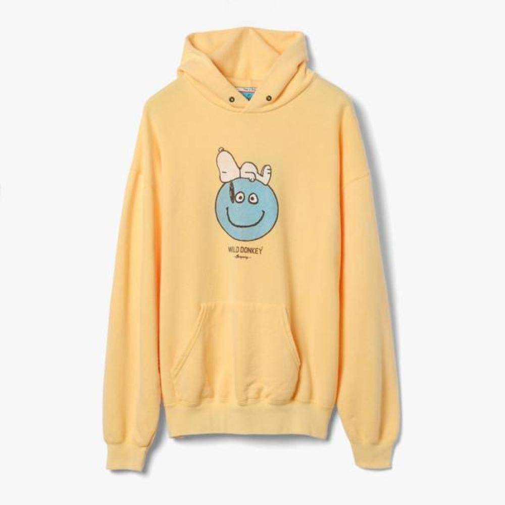The WILD DONKEY SMILE hoodie features unique smile designs and practical front kangaroo pockets. The ribbed finishing on the cuffs and hem highlights a casual mood while providing a soft and sturdy wearing experience.