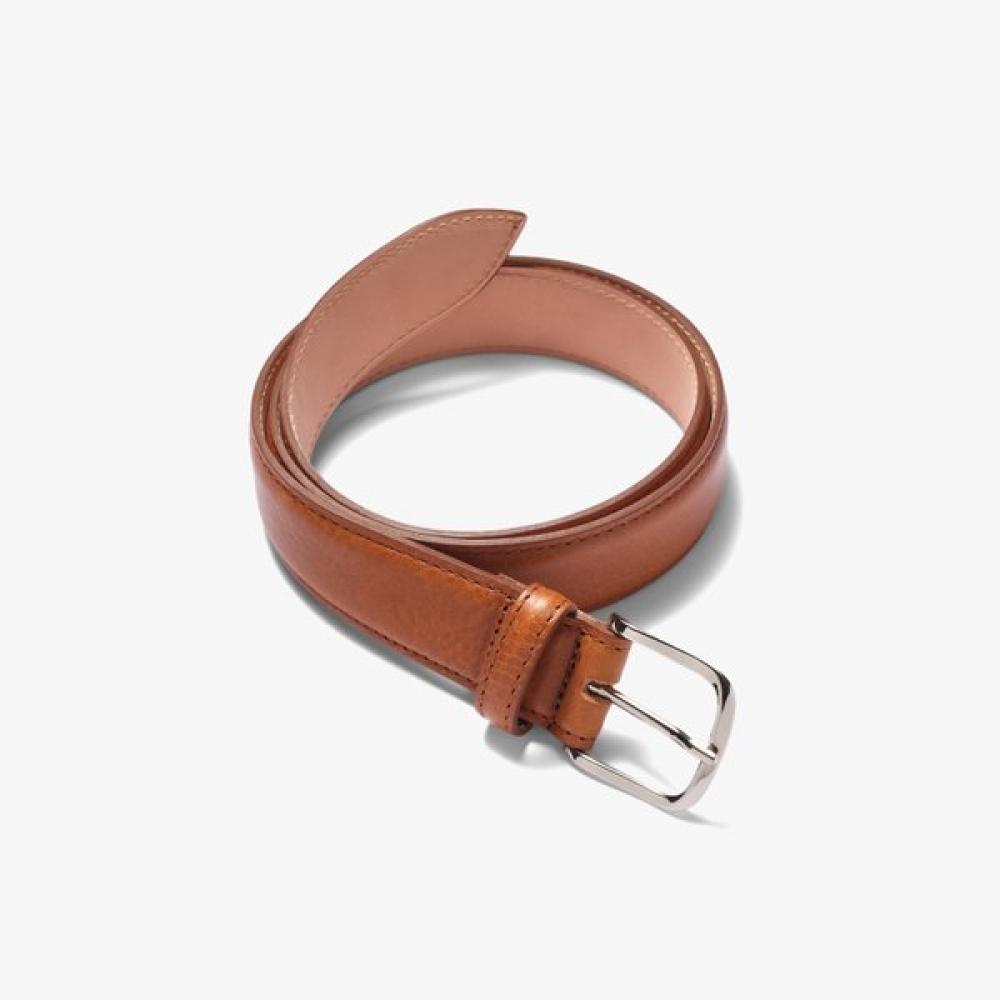The Saddlers G337 Calf Belt comes in an orange-brown color and is made of calf leather. It features remarkable flexibility and elasticity, along with a design that matches various outfits and an attractive leather pattern. It is highly durable, making it suitable for long-term use, and can be utilized in both casual and formal settings.
