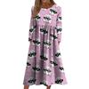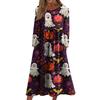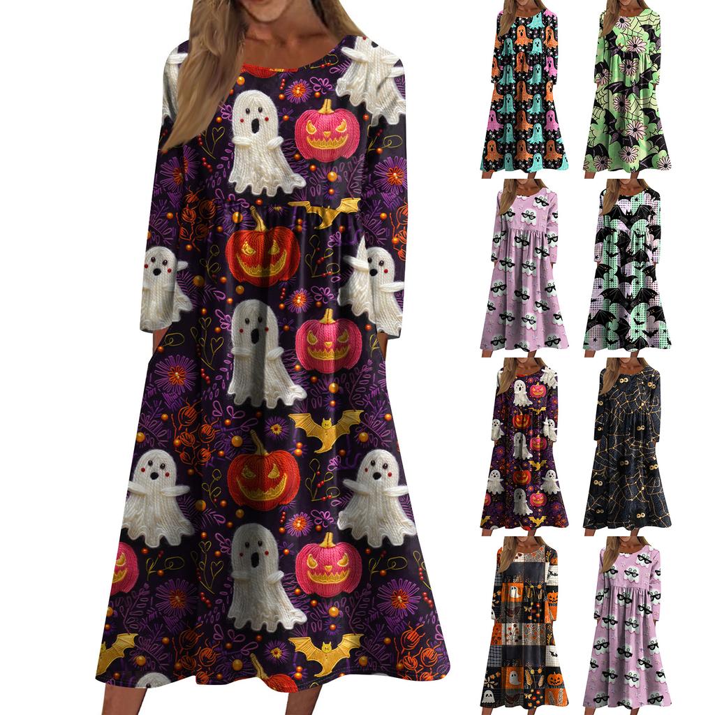 Women's Casual -neck Halloween Print Mid-length Dress Long-sleeved Dress With Pocket