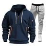 2 stuks/set Heren sportpak met capuchon, lange mouwen, trekkoorddesign, sweatshirt, joggingbroekset, atletisch trainingspak