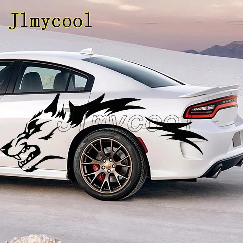 2PC Large Size Car Stickers Coyote Wolf Grunge Design Vinyl Decals Door Side Pickup Vehicle Truck Car Sticker Set Of Two