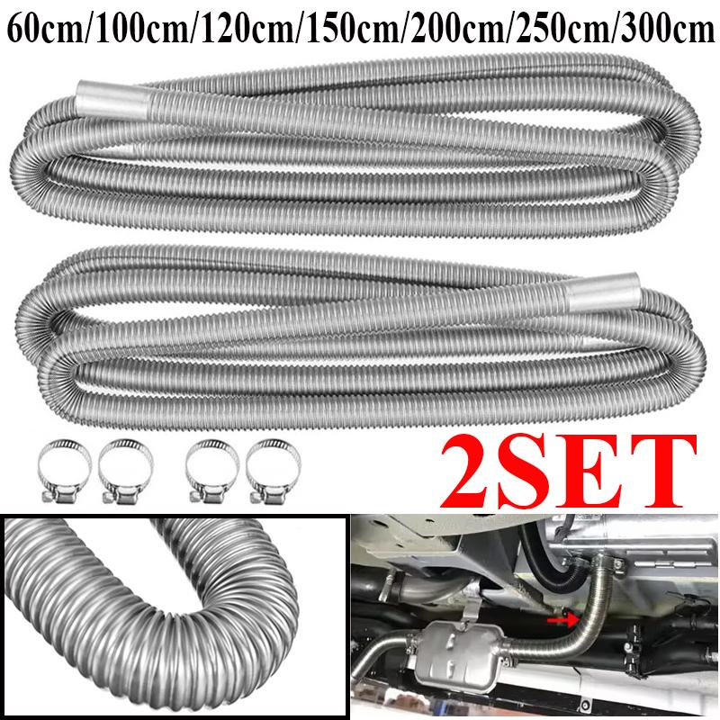 2X 60cm 100cm 120cm 150cm 200cm 250cm 300cm Air Diesel Parking Heater Stainless Steel Exhaust Pipe Tube Vent Hose Car Truck Van