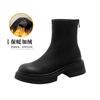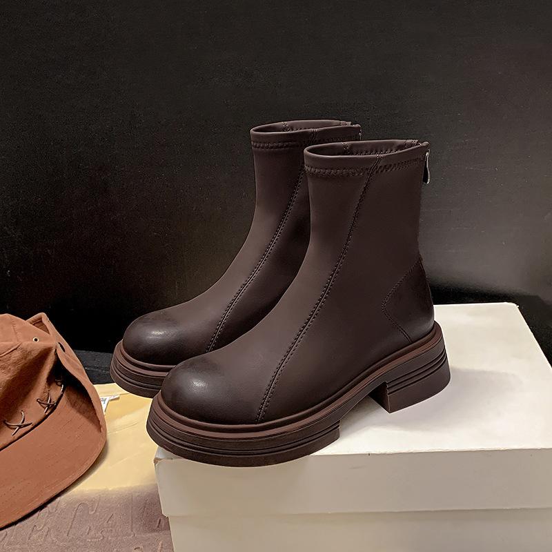 New thick-soled elastic thin boots single boots women's Martin boots leather British style retro round head brown velvet short boots