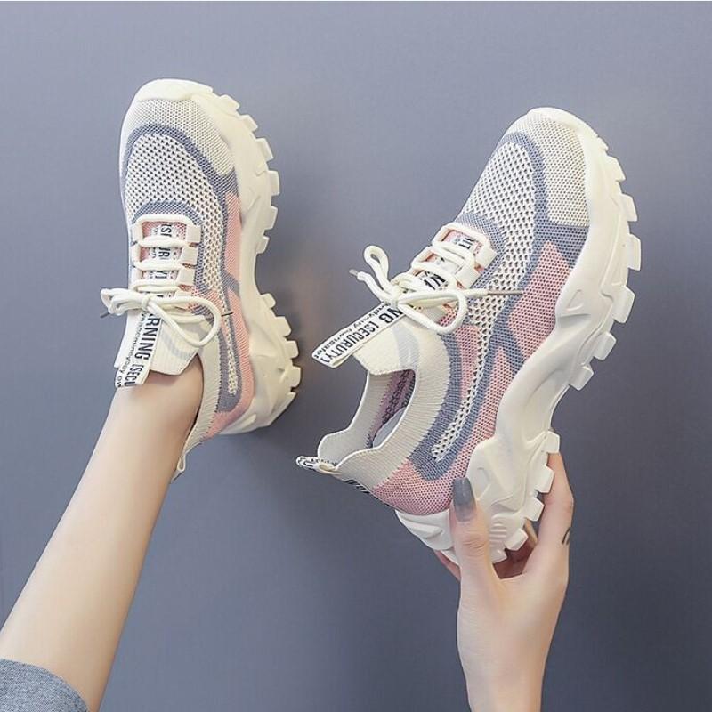 Women's sports shoes spring new fly-woven breathable casual shoes fly-woven heightening dad shoes women's shoes