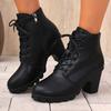 Autumn and winter new European and American plus-size booties, high heels, round toe, lace-ups, thick-heeled Martin boots