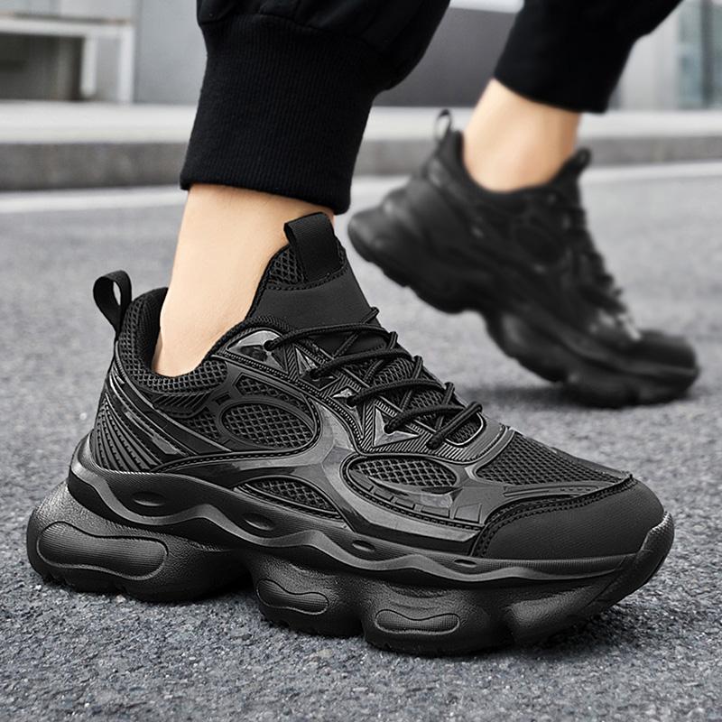 Men's All Black Chunky Sneakers Breathable Mesh Platform Dad Shoes Non-slip Casual Athletic Shoes