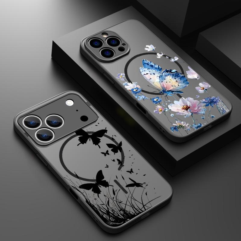 Creative Butterfly Flowers Pattern Case For iPhone 17 Pro Max Magnetic For Magsafe Matte Cover For iPhone 16 Pro Max 15 14 13 16E Air