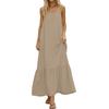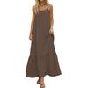 Dames Zomerjurken Spaghetti Bandjes Ronde Hals Gerimpeld Ruches Vloeiend Boho Maxi Jurk