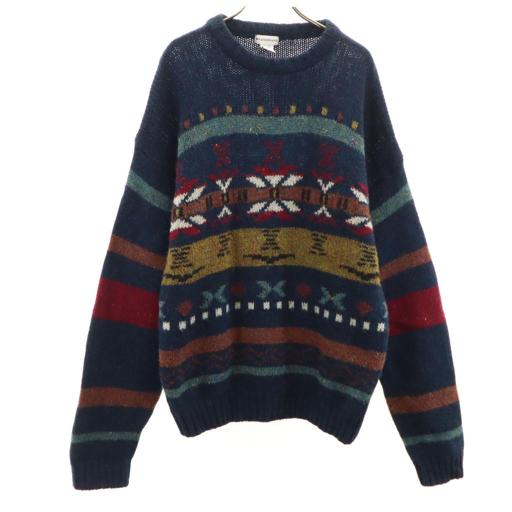 WEATHERVANE 90s Old Overall handle Long sleeve sweater L Navy system knit Men's Used