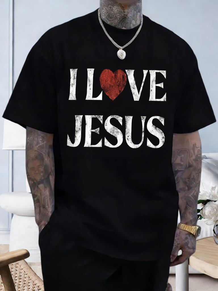 LenteZomer Vintage Ik Hou Van Jezus Patroon Gedrukt Katoenen T-shirt Mode Casual Korte Mouw Ronde Hals HerenDames T-shirts
