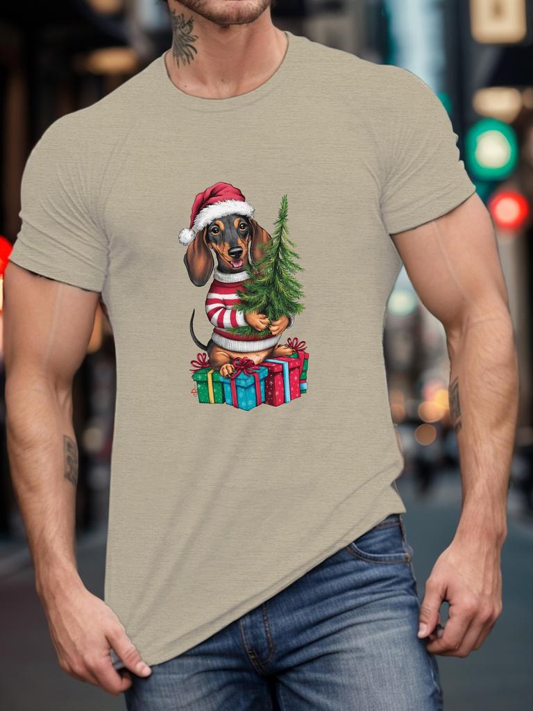 Christmas Dachshund Dog Graphic Tee Men Casual Cotton Round Neck Short Sleeve TShirt Gift