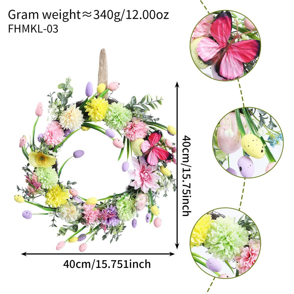 Easter Wreath 40cm Artificial Cute Festive Spring Garland Front Door Wreath for Family Friends Adults Men Women Holiday Home