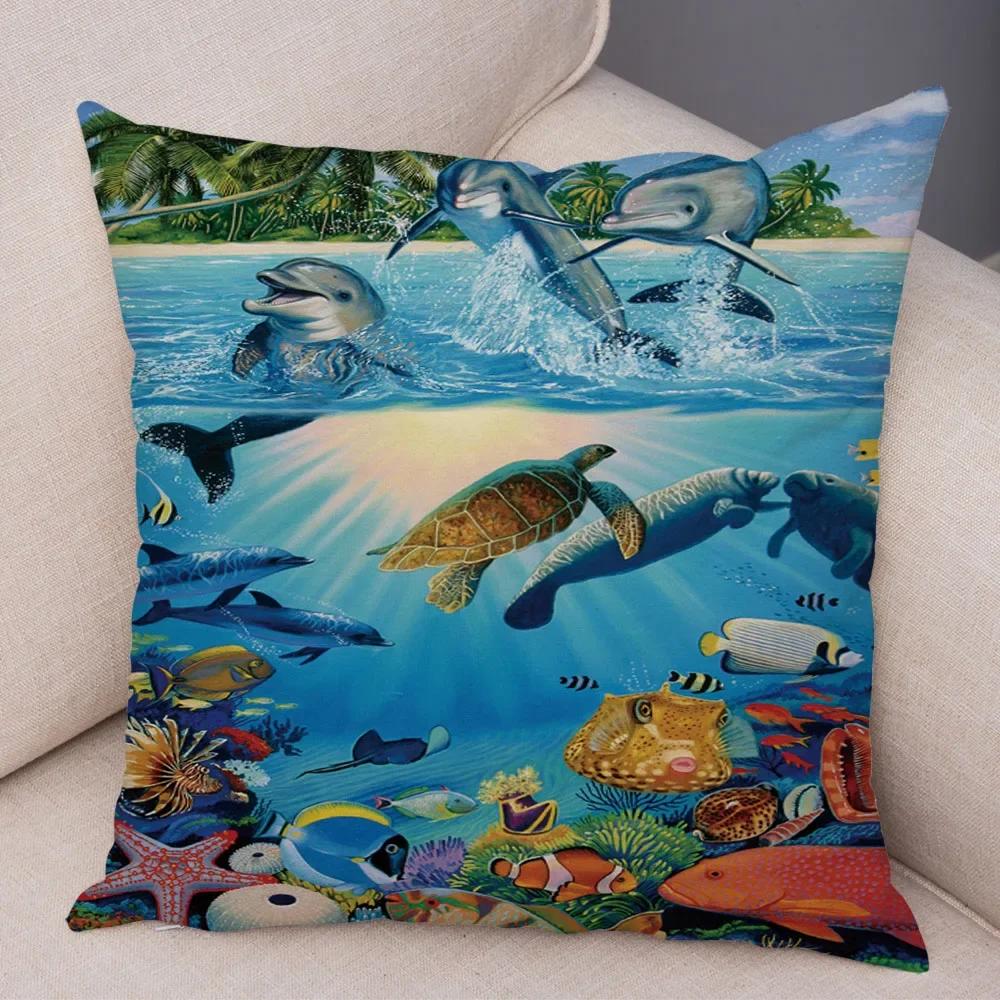 Schildpad Haai Dolfijn Dier Kussensloop Decor Onderwater Wereld Kussenhoes Zachte Pluche Kussensloop voor Bank Huis Auto ,(14)