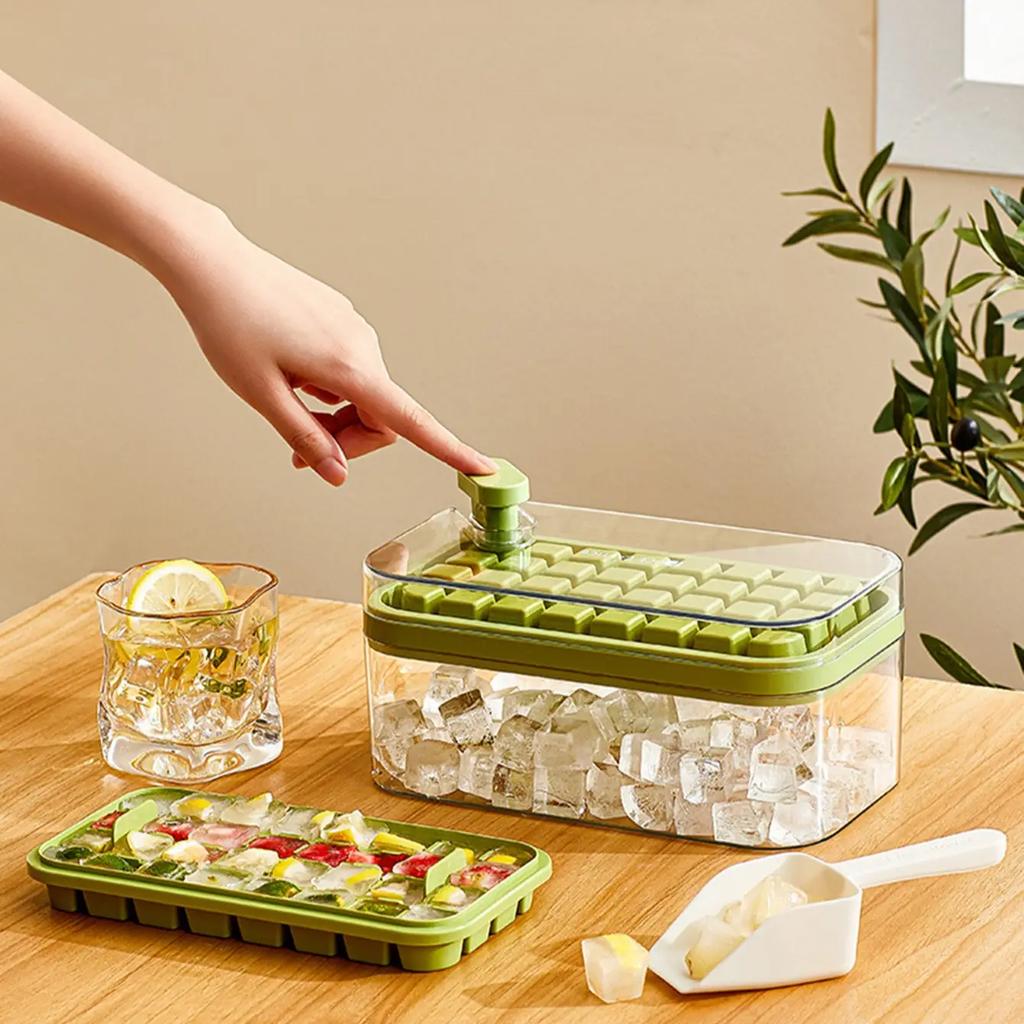 1set-Ice Cube Trays - Free Plastic Trays with Lid,Bin&Scoop-High Capacity,Stackable&Easy Release for Freezer,Whiskey & Cocktails