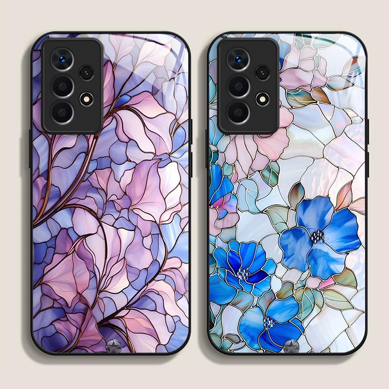 Luxury Flower Marble Texture Tempered Glass Phone Case for Samsung Galaxy S25 Ultra S24 S23 Plus S22 S21 S20 FE A56 A55 5G Cover