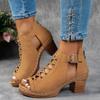 Women Summer Elegant Sandals Thick Heel Wedge Chunky High Heels Open Toe Hollow Cross Bundled Wedding Versatile Shoes