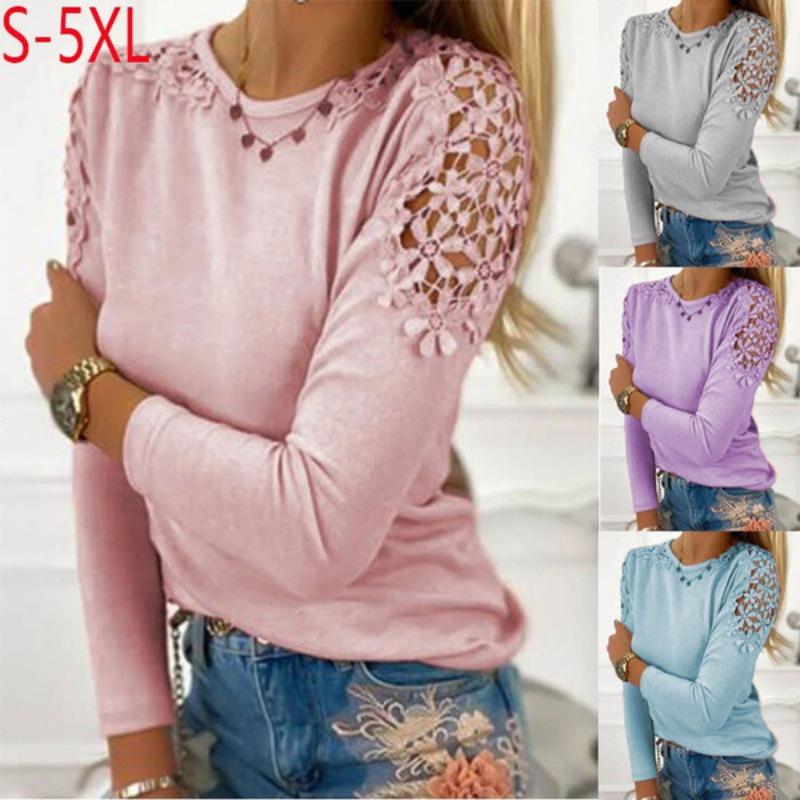 Damesmode Casual Effen Kleur Print Lange Mouwen Ronde Hals Blouses & Overhemden