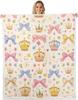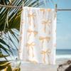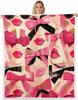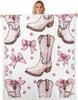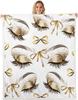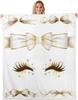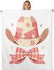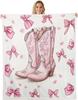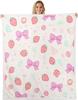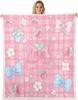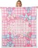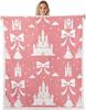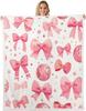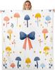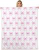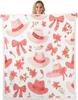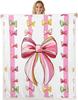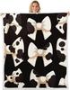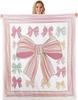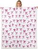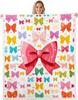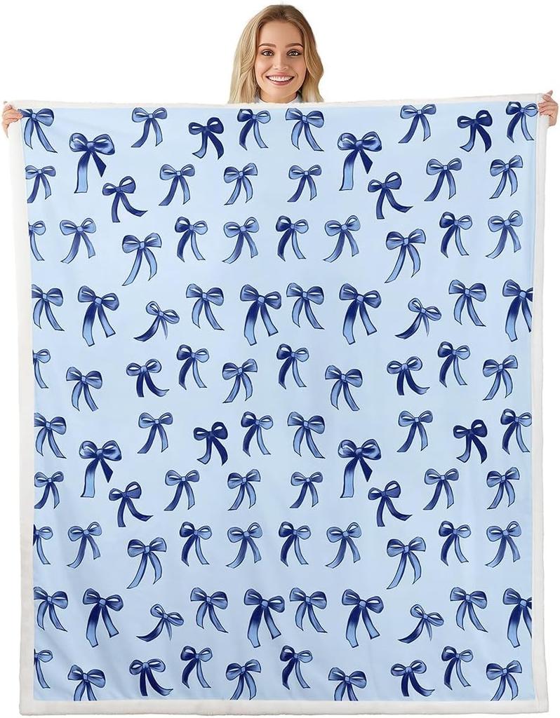 Blue Bow Pattern Blanket Soft Fleece Throw Elegant Home Decor Gift for Women Girls Bedroom Bedding Cover