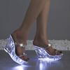 Light Up Glowing Shoes Woman LED Luminous Clear Sandals Summer Petal Platform High Heel Transparent Club Party Round Heels Shoes
