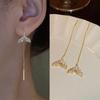 Hangende Oorlijn Lange Hangende Oorbellen voor Vrouwen Roségoud Kleur Zirkonia Kristal Piercing Inrijgoorbel Ooraccessoires Sieraden
