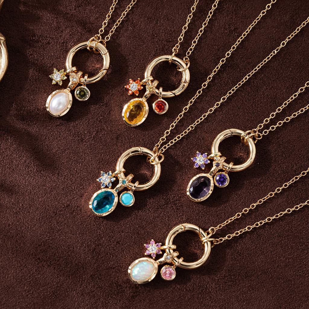 DIY Birthday Stone Necklace 12 Birthday Stone Pendant Zircon Clavicle Chain Plated with Genuine Gold for Color Preservation