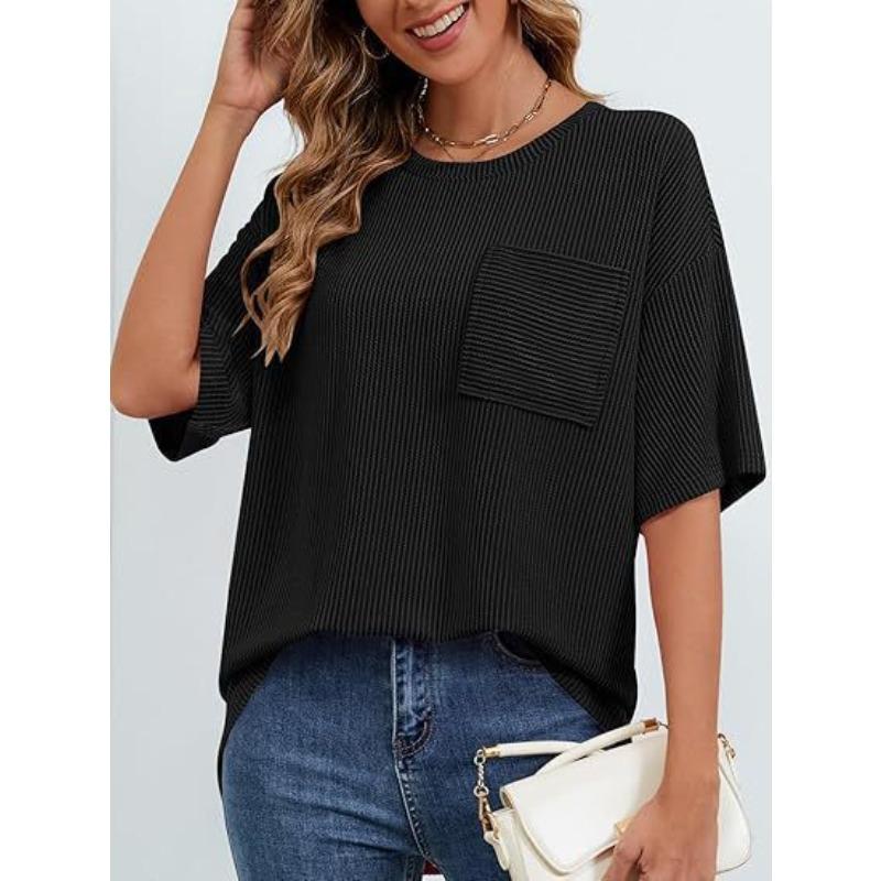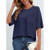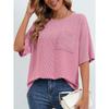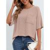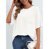 Women's Summer Short Sleeve Patch Pocket Top Oversized Round Neck Textured Casual Basic T-Shirt
