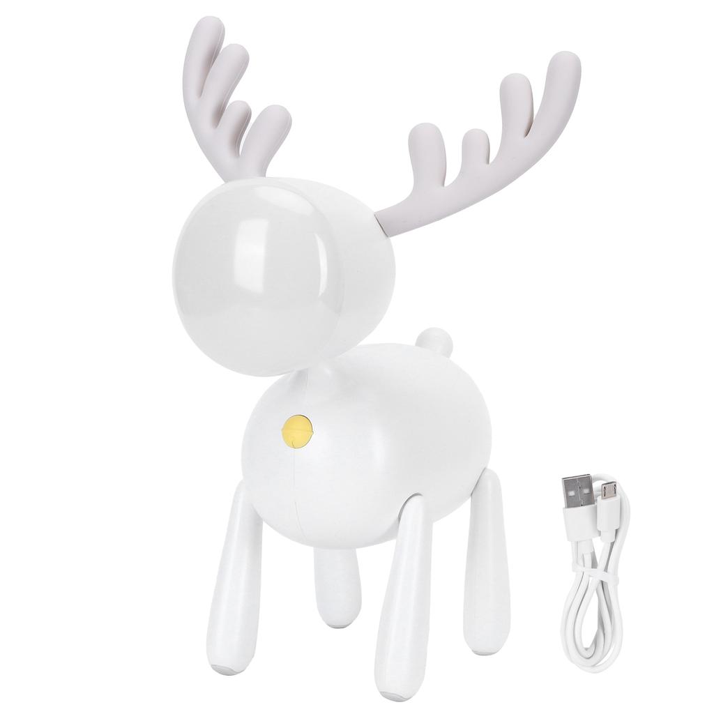 LED Night Light Cartoon Deer Shaped Table Lamp 1200mAh USB Charging Bedroom Decoration(White )