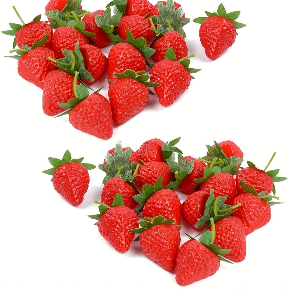 20 Strawberry Food Sample Models with Perfect for Cake Shop and Fruit Shop Displays Stems,